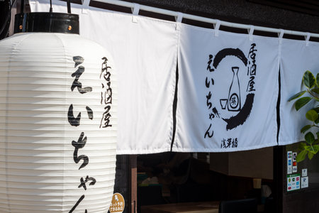 Tokyo, Japan, November 1, 2023: Traditional lanterns hanging outside a local restaurant