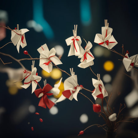 Tanabata or Star festival background with cowherd bamboo branches with hanging wishes. Tanabata, bamboo branches with gifts attached to them are thrown into nearby rivers