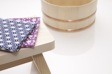Bathroom chairs made of natural wood and bath pail and Japan Washcloths