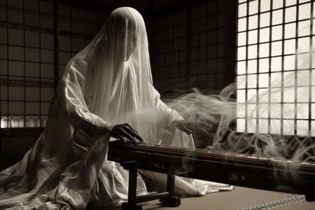 A haunting koto played by a ghostly figure AI generated