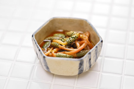 mekabu no sunomono, vinegared wakame seaweed salad roots, japanese cuisine