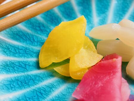 Japanese food pickled radish, pickled garlic ginger