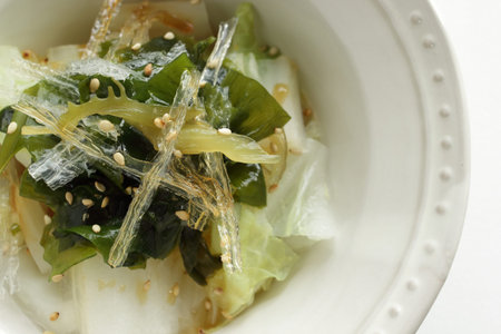 Japanese healthy food, agar and boiled cabbage salad