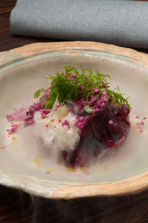 tasty beetroot with wood mushrooms. salad in a restaurant
