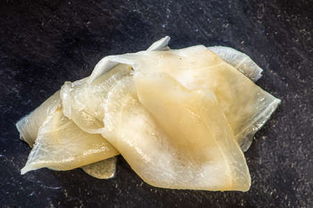 Ginger sushi black wooden background close-up marinated