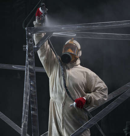 painter painting metal designs with airbrush