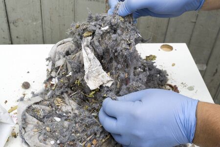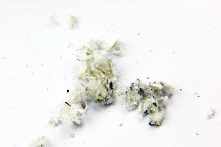 Chrysotile asbestos fibers lie heap on a white background. Macro photography.