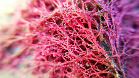 Beautiful red algae on the seashore.