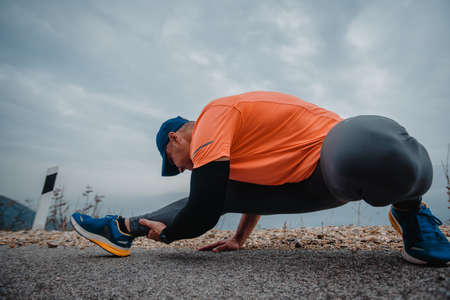 Fit man over 40 wearing activewear preparing for a running exercise