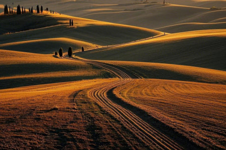 Tuscany's golden fields, idyllic Italian scenery