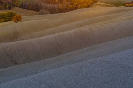 Rolling hills of different colors in soft light, Tuscany, Italy.