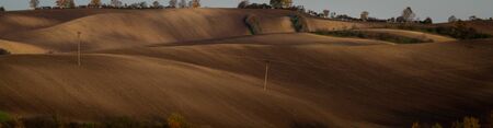 October in countryside, plowed fields of agricultural land, landscape at sunset