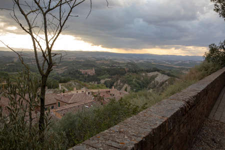 Chiusure, Asciano (SI), Italy - August 15, 2021: Landscape view from Chiusure village, Asciano, Tuscany, Italy