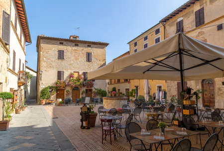 Cozy town square with restaurant in Pienza