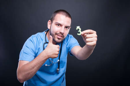 portrait of handsome male doctor explaining