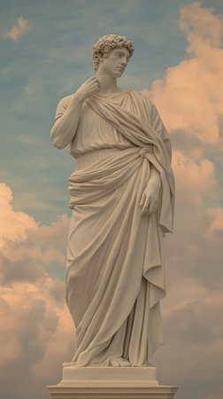 Stone statue of male figure standing outdoor. Concepts: historical monument, contemplation and wisdom, heritage preservation. AI Generative.