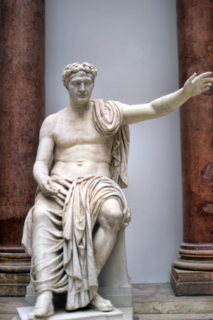 Roman sculpture with white wall background
