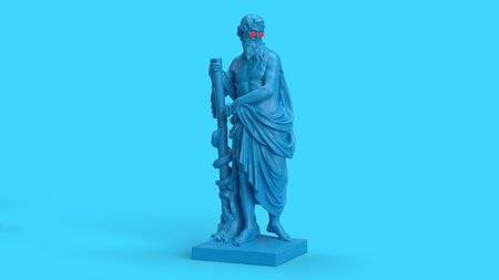 A statue with the snake on the staff of Asclepius. 3d illustration.
