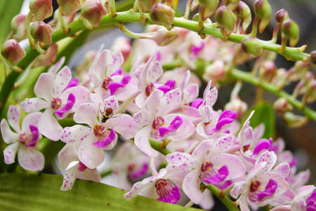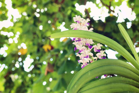 A beautiful bunch of White and purple Rhynchostylis gigantea orchid in a garden