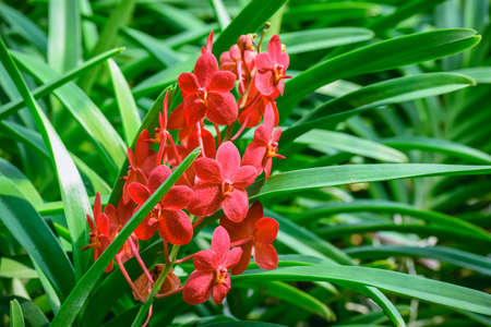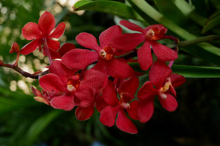 Red orchids in a botanical garden in Kuala Lumpur, Malaysia