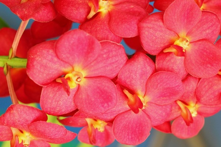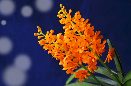 Beautiful orange ascocentrum miniatum orchid on blue background