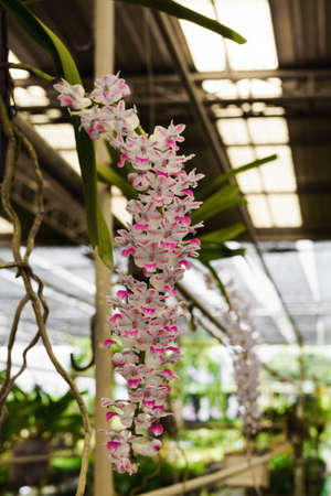 Rhynchostylis gigantea orchid flower in greenhouse of a nursery shop