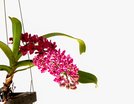 Pink orchid flower isolated on white background, Aerides multiflora.