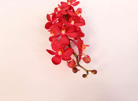 Red orchid bouquet on white background.
