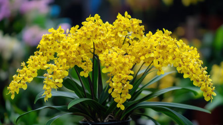 A blooming Oncidium orchid, also known as the Dancing Lady, with its bright yellow flowers