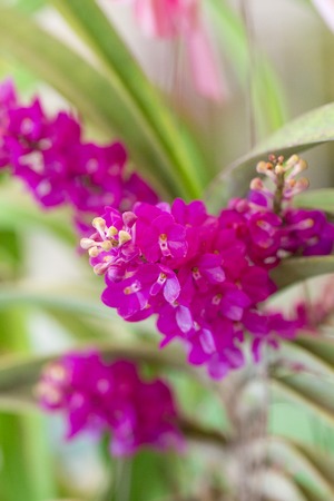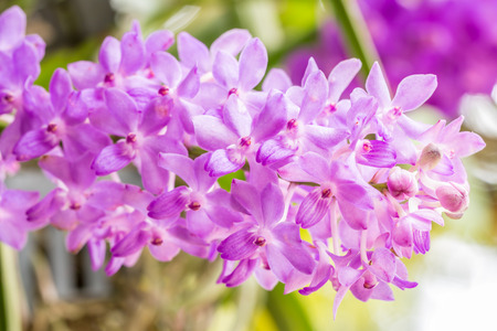 close-up Purple orchid bunch, (Aerides rosea Lodd. ex Lindl. Paxton). in the green forest