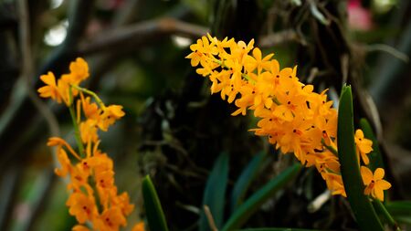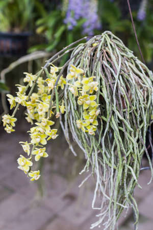 Yellow of orchid, Chiloschista parishii, Tropical in Thailand.