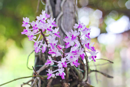Purple orchid flower in the garden. (Rhynchostylis gigantea)