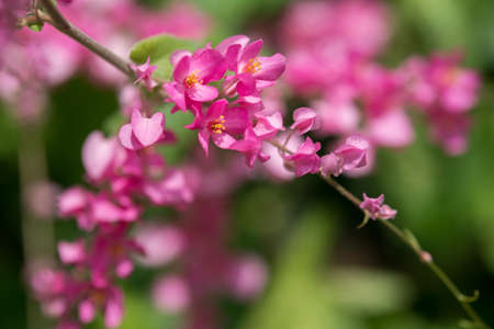Antigonon leptopus , Coral vine or Mexican creeper or Chain of love or Pink vine or Honolulu Creeper or POLYGONACEAE or pink flowers in the garden