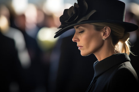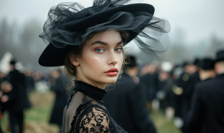 Portrait of mourning young woman, a widow in cemetery grief and respect for dead person