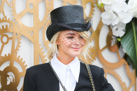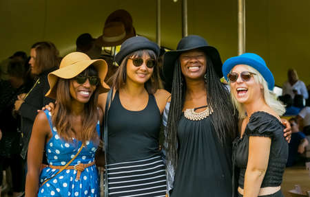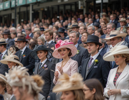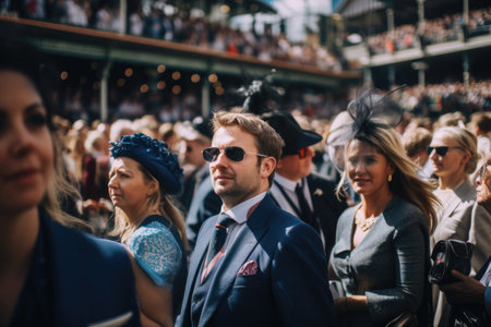 Well dressed English people watching Horse racing event at summer sunny day