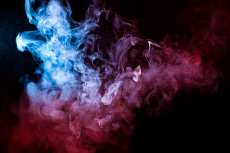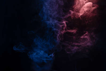 Colorful blue, red and pink smoke on a black background. Background from the smoke of vape