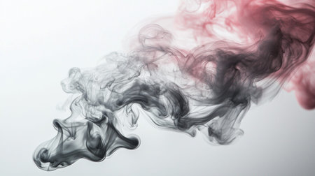 An artistic representation of swirling smoke in shades of black and white against a clean white background, creating a dramatic and elegant visual.