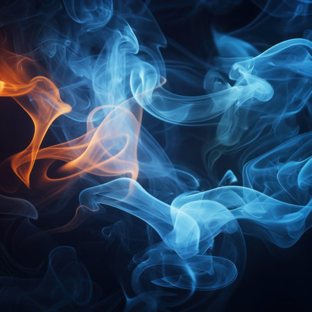 Blue and orange smoke swirl against a black background, creating an abstract design