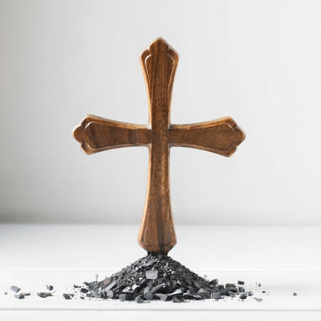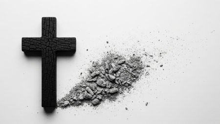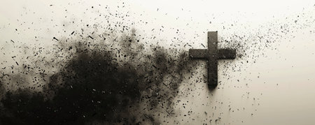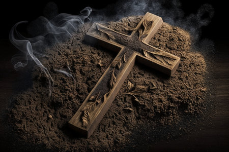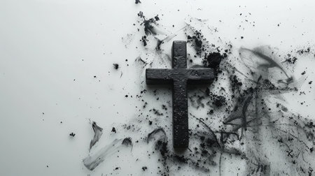 Solemn Christian Cross amidst Ashes Symbolizing Faith and Reflection