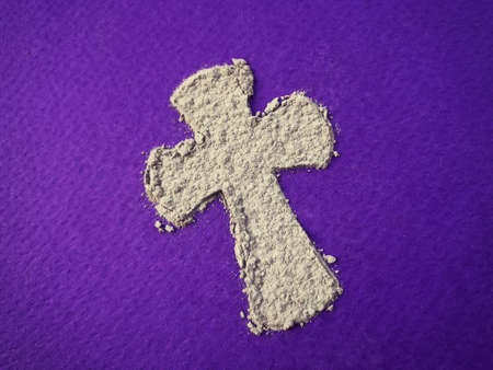 Cross made of ashes, Ash Wednesday, Lent season abstract background
