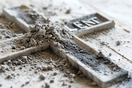 Stone cross with ash dust in dark background, moody lighting