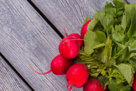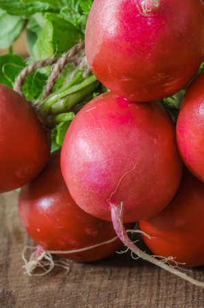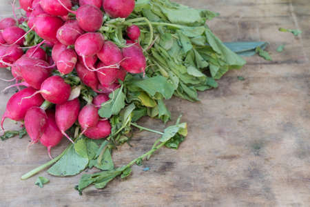 Bunch of fresh organic radish on wood table