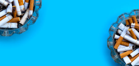 Cigarette butts and ashtray. Stop smoking for your life.