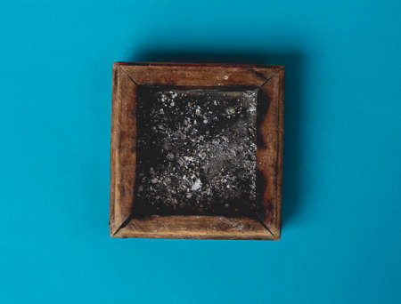 wooden ashtray in an attractive classic design on a blue background