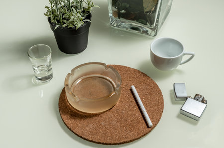 white ashtray and a white table