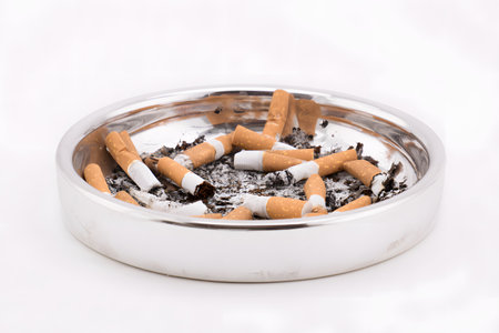 smoking a cigarette on ashtray in white background.
