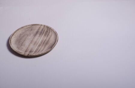 Old wooden plate on white background. Colors of nature