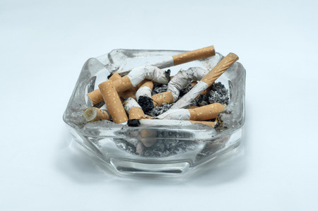 cigarette stub in ashtray on White background