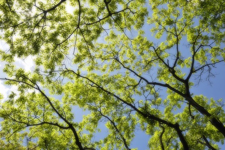 Branches of trees in the view from below into the sky