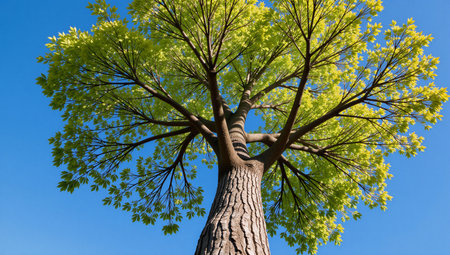 view from the ground of large branches generative ai